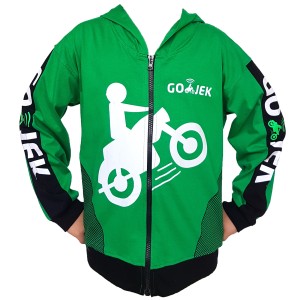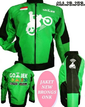 jaket gojek bahan parasut lapisan kaos adem di pakai tidak gerah menyrap kringat..bordil komputer